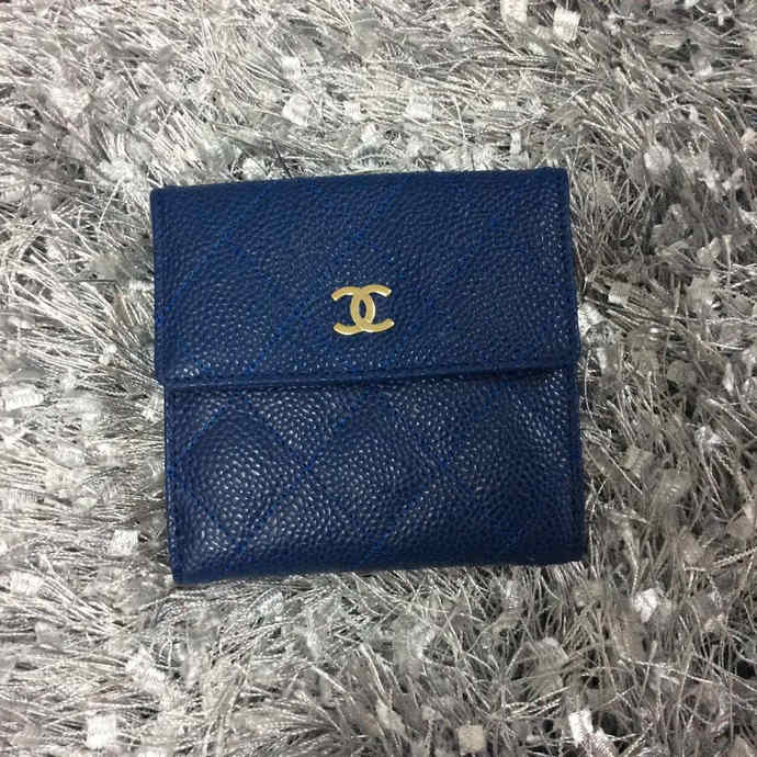 2015 Chanel Matelasse Tri-Fold Wallet Caviar Leather A48980 Blue