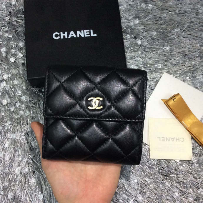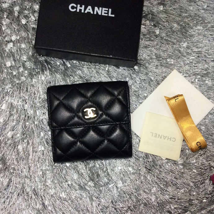 2015 Chanel Matelasse Tri-Fold Wallet Original Sheepskin Leather A48980 Black