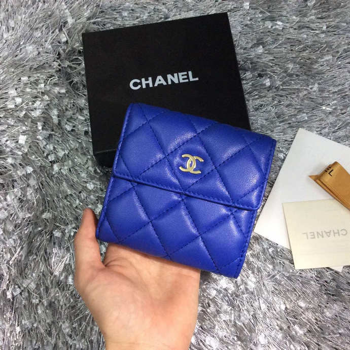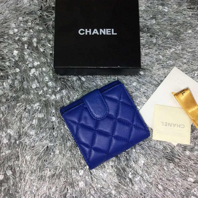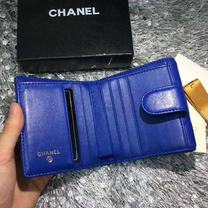 2015 Chanel Matelasse Tri-Fold Wallet Original Sheepskin Leather A48980 Blue