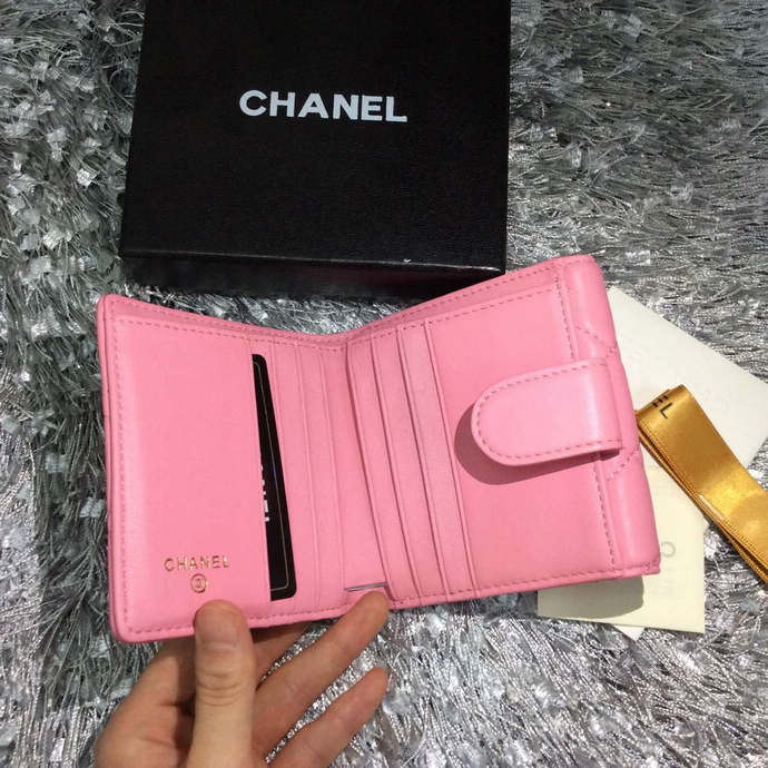 2015 Chanel Matelasse Tri-Fold Wallet Original Sheepskin Leather A48980 Pink