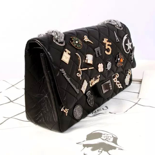 2015 Chanel Opper Badge Bag Original Leather 1112 Black