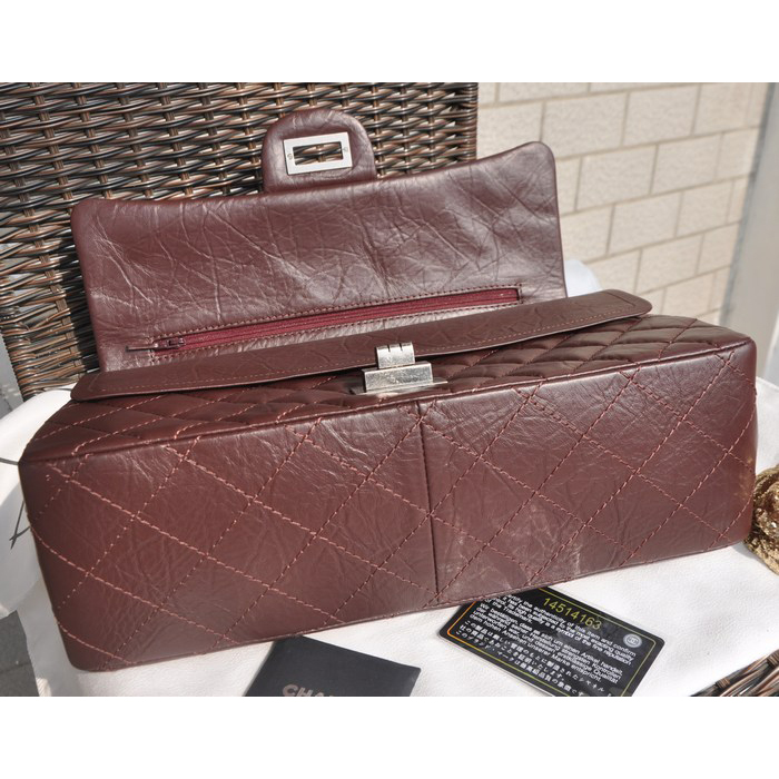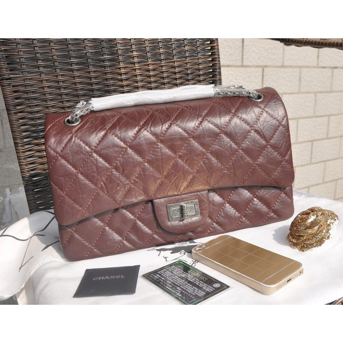 2015 Chanel Original Glazed Crackled Leather Classic Flap Bag A30227 Burgundy