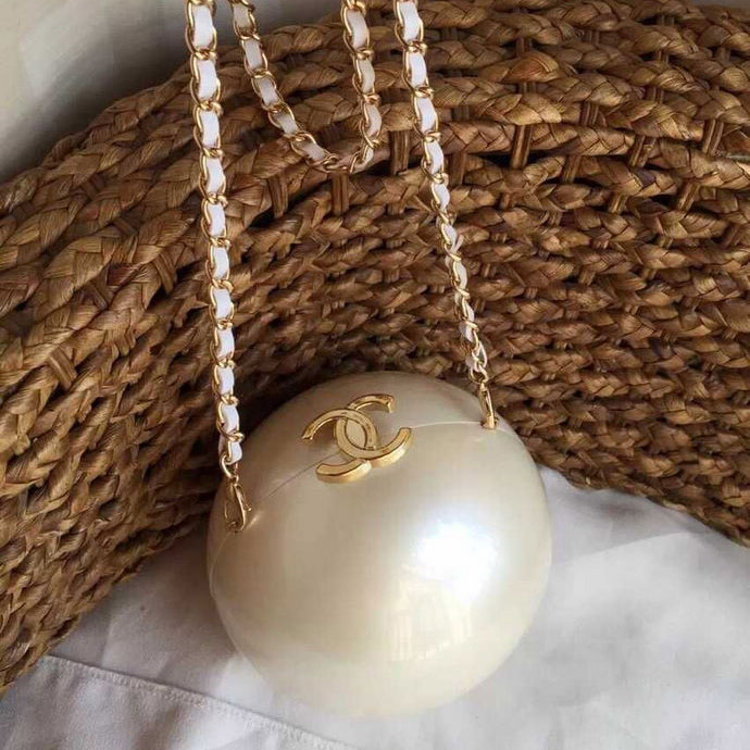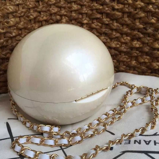 2015 Chanel Plexiglass Pearl Clutch Bag R14 White