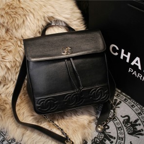 2015 Chanel Sheekskin leather tote shoulder bag A68040 Black