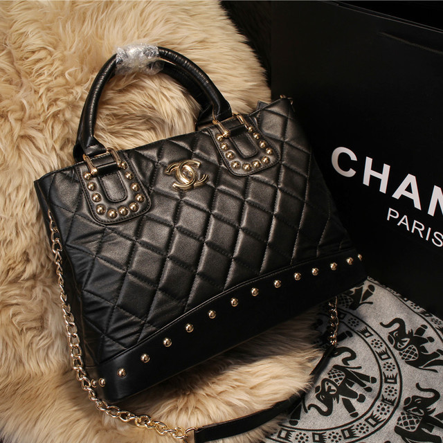2015 Chanel Sheepskin Leather Tote Bag A68056 Black