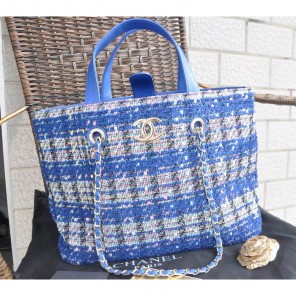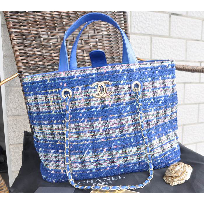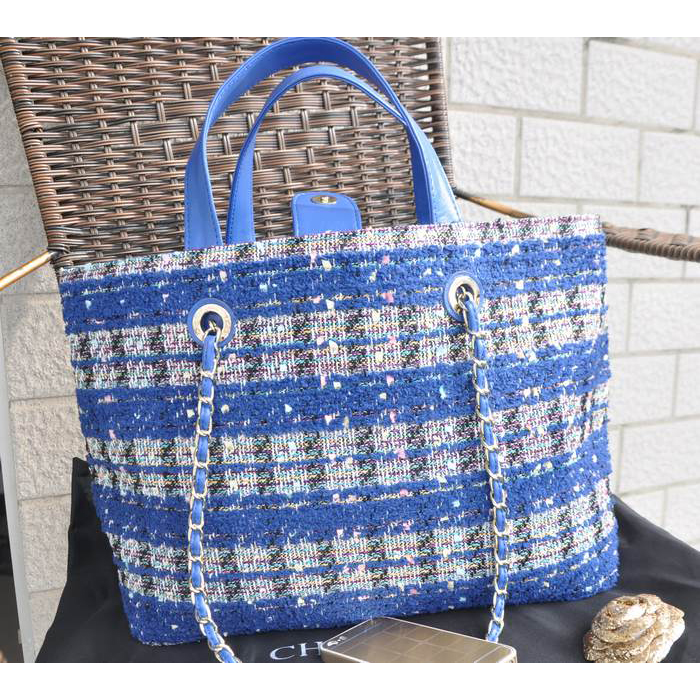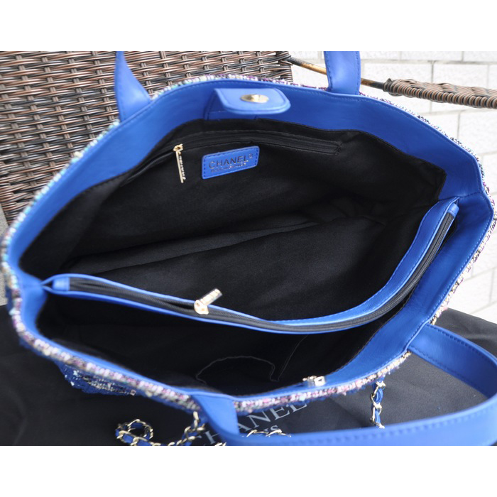 2015 Chanel Shopper Bag Fabric & Leather A68027 Blue