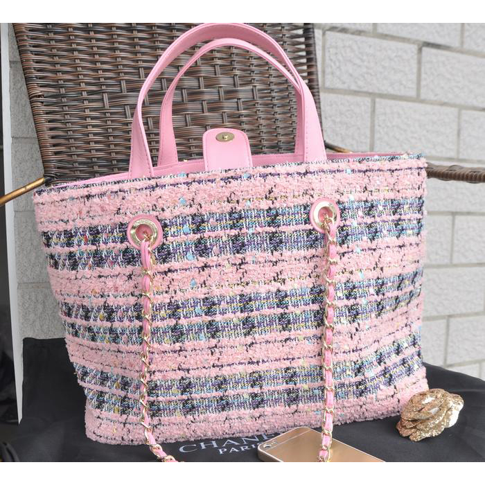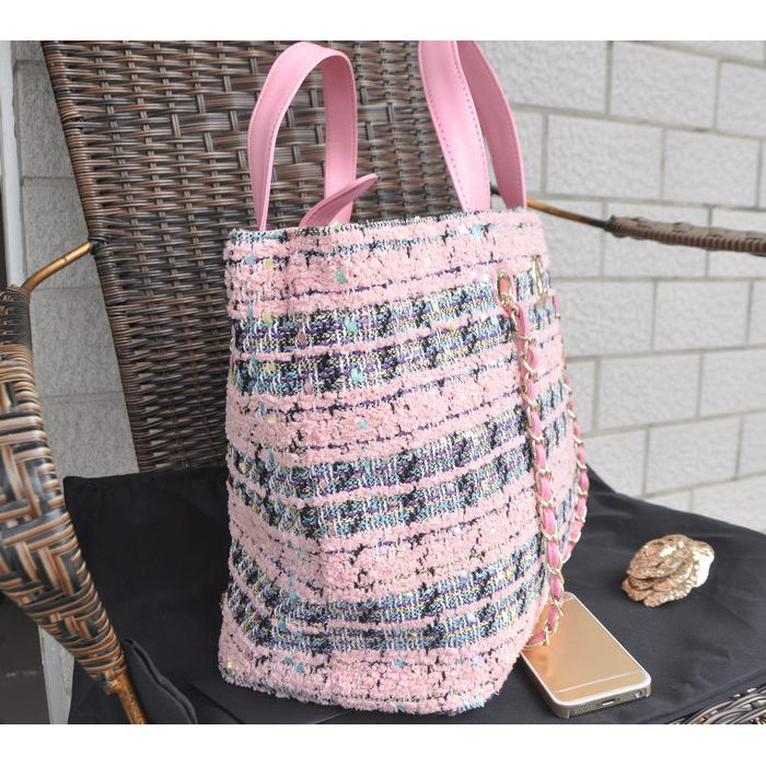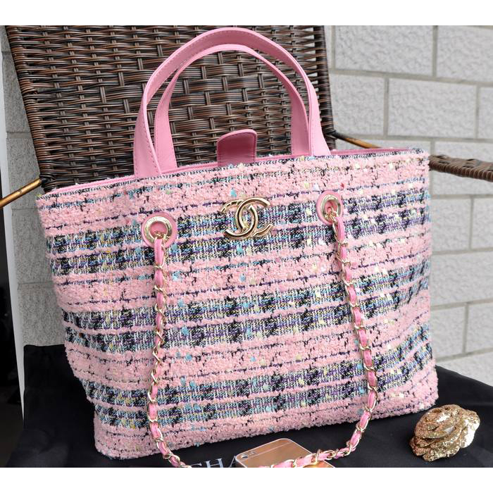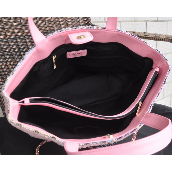 2015 Chanel Shopper Bag Fabric & Leather A68027 Pink