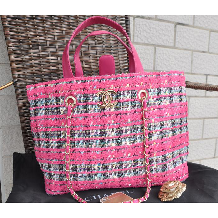 2015 Chanel Shopper Bag Fabric & Leather A68027 Rose