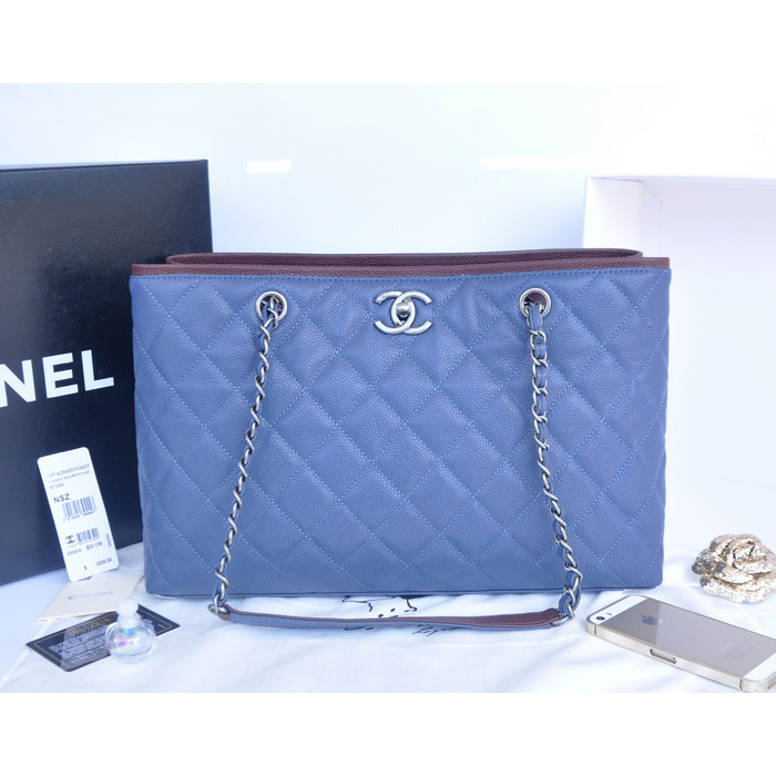 2015 Chanel Shopper Bag Original Caviar Leather A90454 Blue