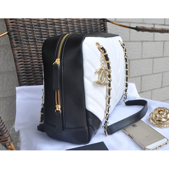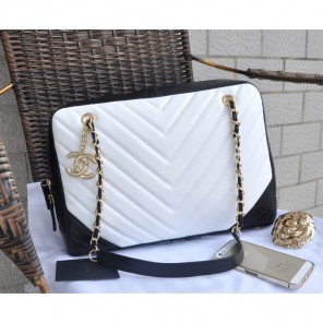 2015 Chanel Shopper Bag Sheepskin Leather A90688 White&Black