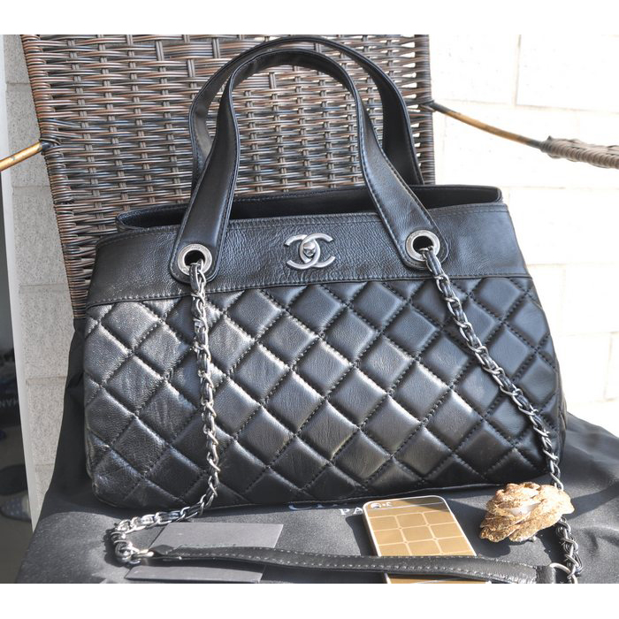 2015 Chanel Shopper Tote Bags Sheepskin Leather A68016 Black