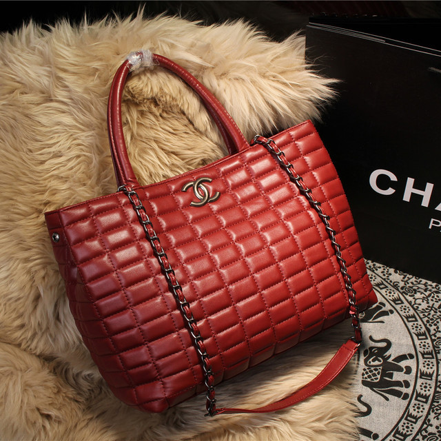 2015 Chanel Shopper Tote Bags Sheepskin Leather A68035 Burgundy