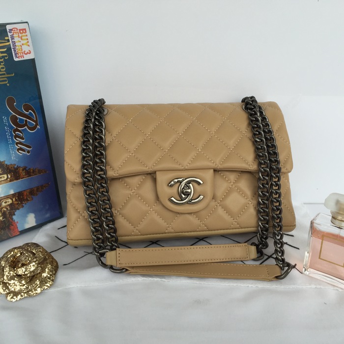 2015 Chanel Shoulder Bag Burgundy Rocks Lambskin A92745 Apricot
