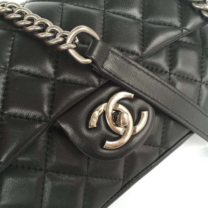 2015 Chanel Shoulder Bag Burgundy Rocks Lambskin A92745 Black