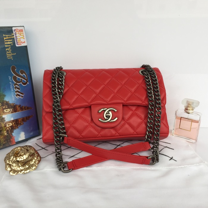 2015 Chanel Shoulder Bag Burgundy Rocks Lambskin A92745 Red