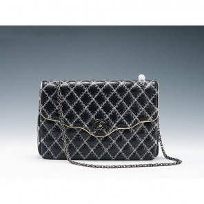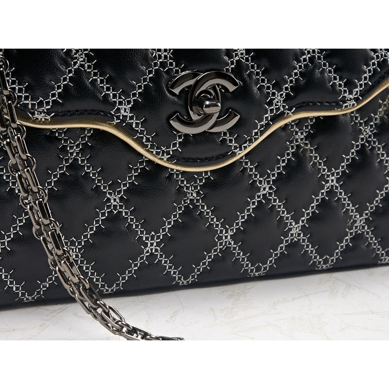 2015 Chanel Shoulder Bag Lambskin Leather A6989 Black&White