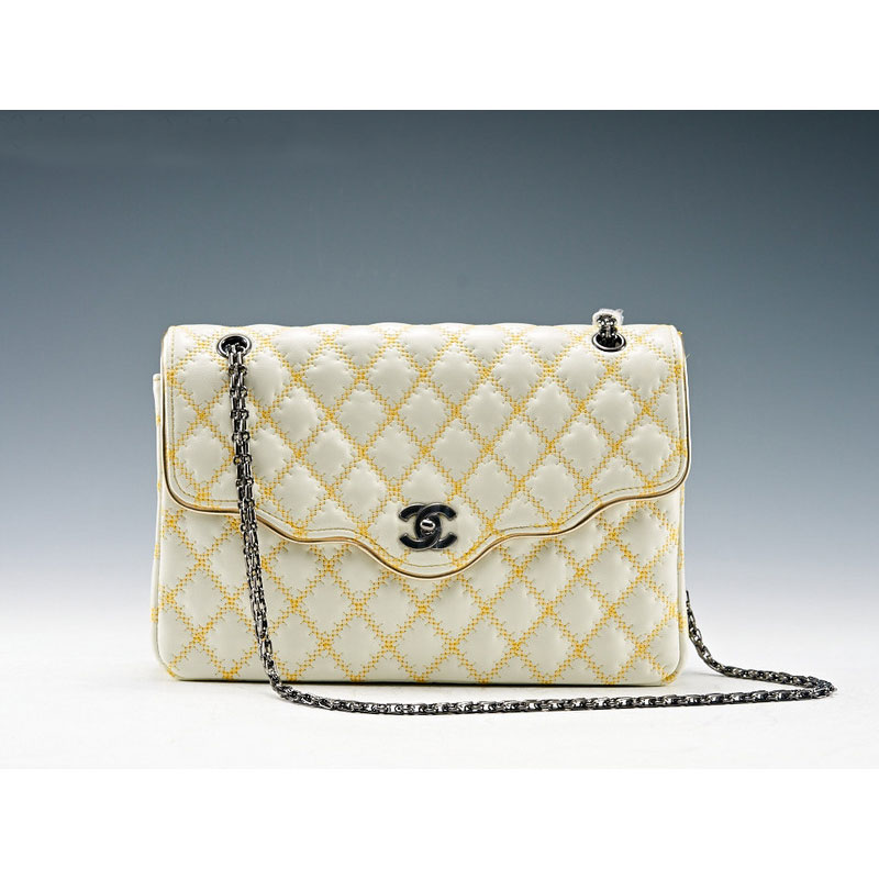 2015 Chanel Shoulder Bag Lambskin Leather A6989 White