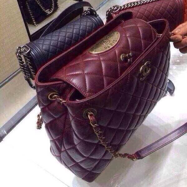2015 Chanel Shoulder Bag in original Sheepskin Leather A49331 Burgundy