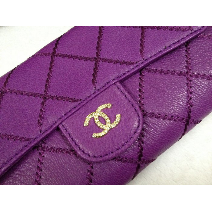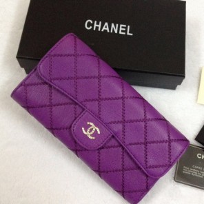 2015 Chanel Tri-Fold Wallet Original Leather A9557 Purple