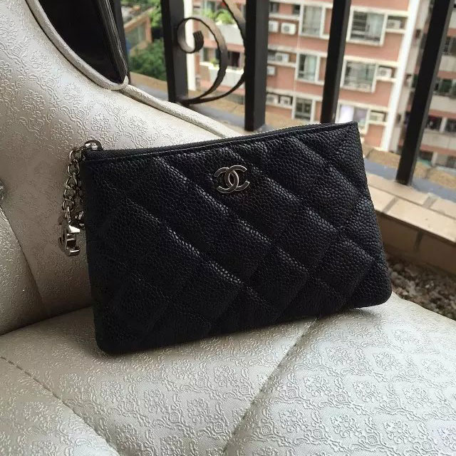 2015 Chanel coin purse Original Caviar Leather A31514 Black with Silver