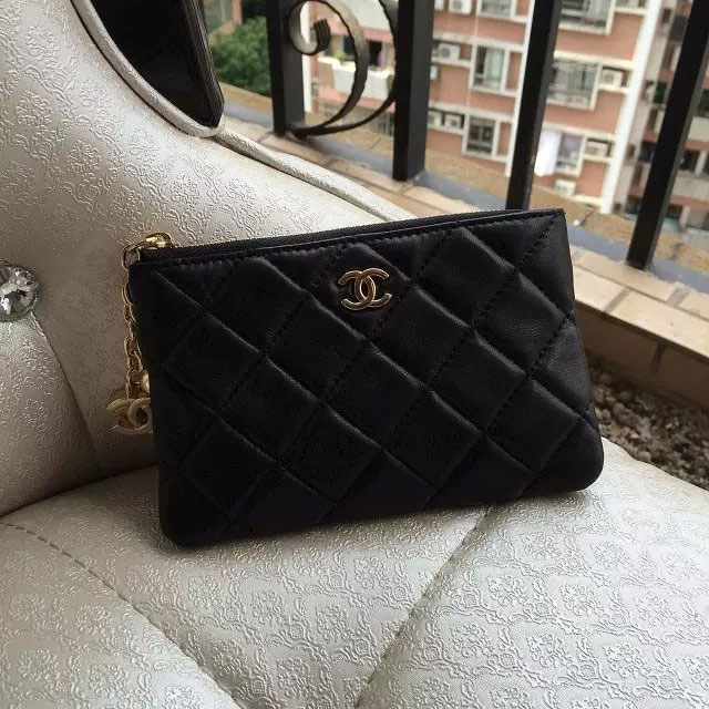 2015 Chanel coin purse Original Leather A31514 Black with Gold