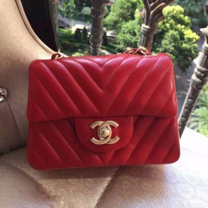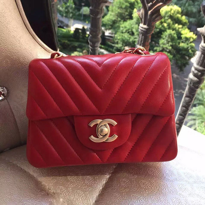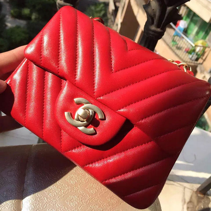2015 Chanel mini Classic Flap Bag Red Original Sheekskin leather A1115 Gold