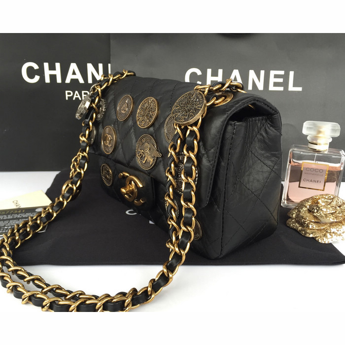 2015 Chanel mini Opper Coin Bag Calfskin Leather A92675 Black