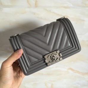 2015 LE Boy Chanel Flap Shoulder Bag Original Leather A67063 Grey