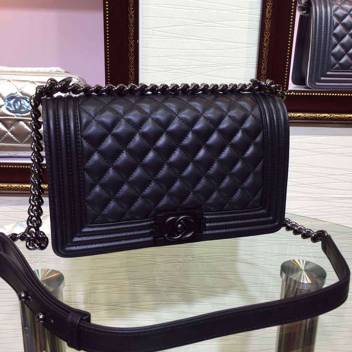 2015 LE Boy Chanel Flap Shoulder Bag Original Sheepskin Leather A67086 Black
