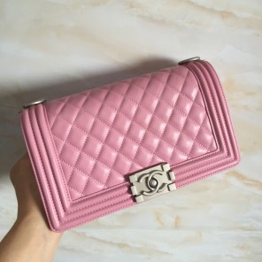 2015 LE Boy Chanel Flap Shoulder Bag Original Sheepskin Leather A67086 Pink