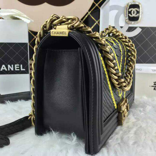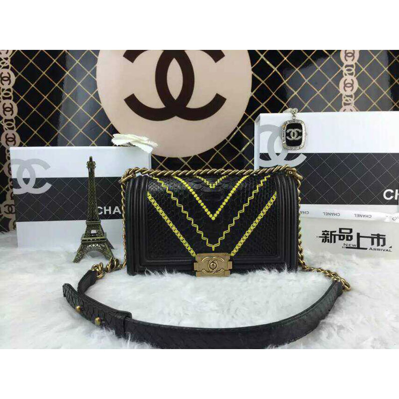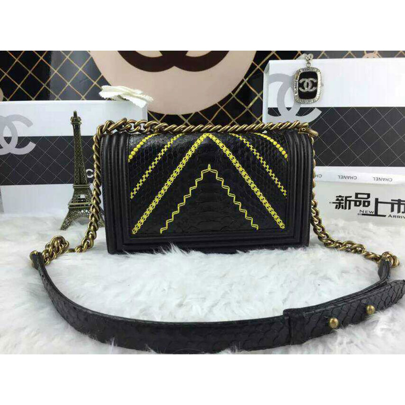 2015 LE Boy Chanel Flap Shoulder Bag Python Leather A67086 Black