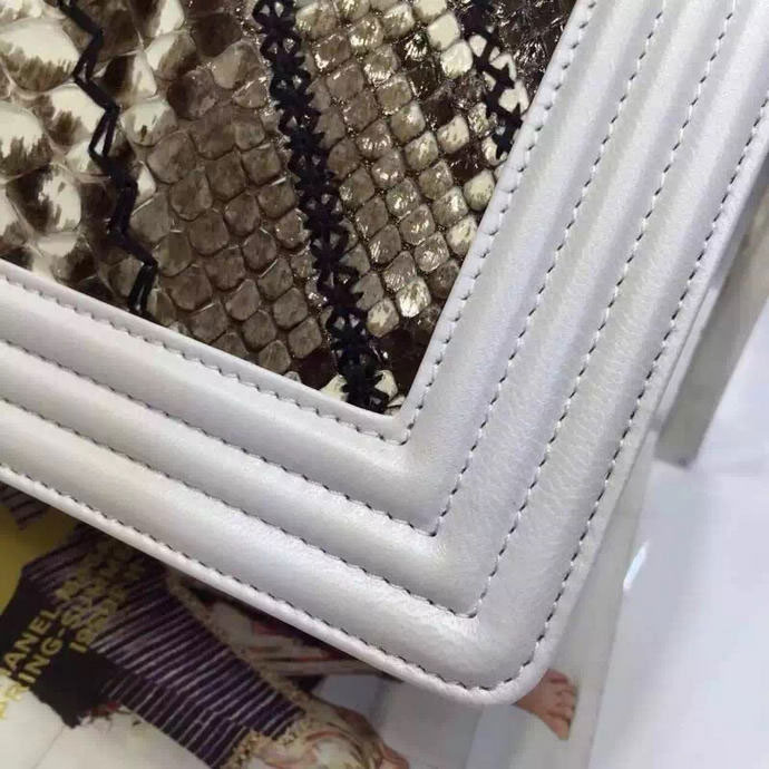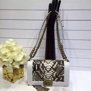 2015 LE Boy Chanel Flap Shoulder Bag Python Leather A67086 White