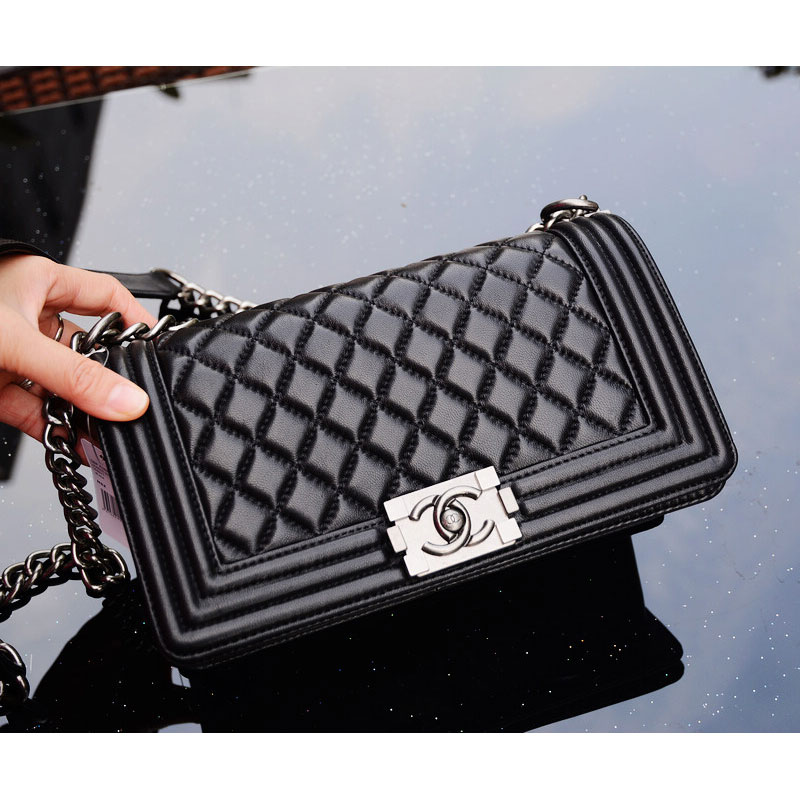 2015 LE Boy Chanel Flap Shoulder Bag Sheepskin Leather A67086 Black