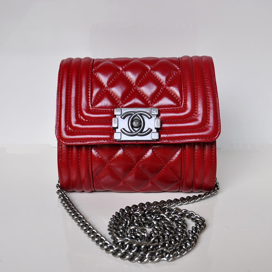 2015 Le Boy Chanel A69088 Iridescent Leather Shoulder Bag Red