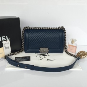2015 Le Boy Chanel Flap Shoulder Bag Original Sheepskin Leather A92828 Royalblue