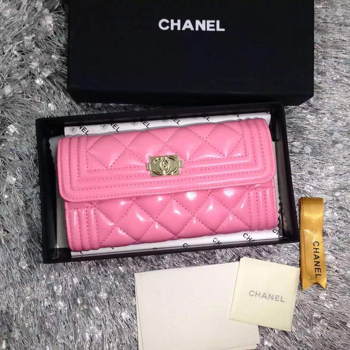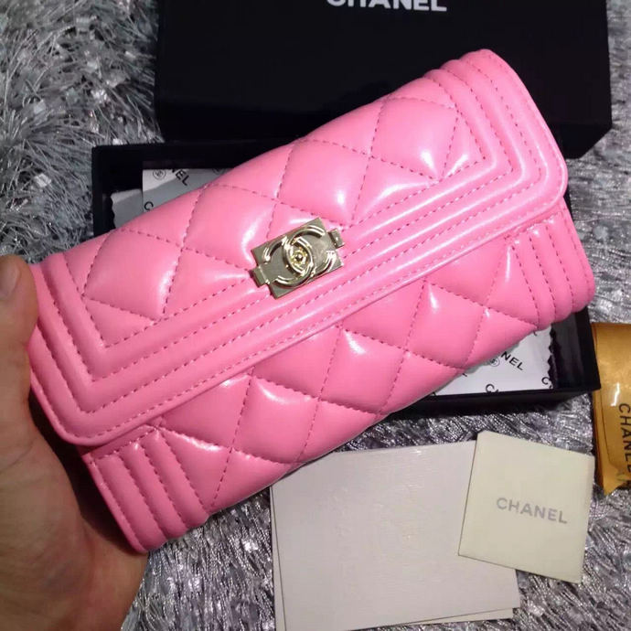 2015 Le boy Chanel Matelasse Bi-Fold Wallet Original Leather A50096 Pink