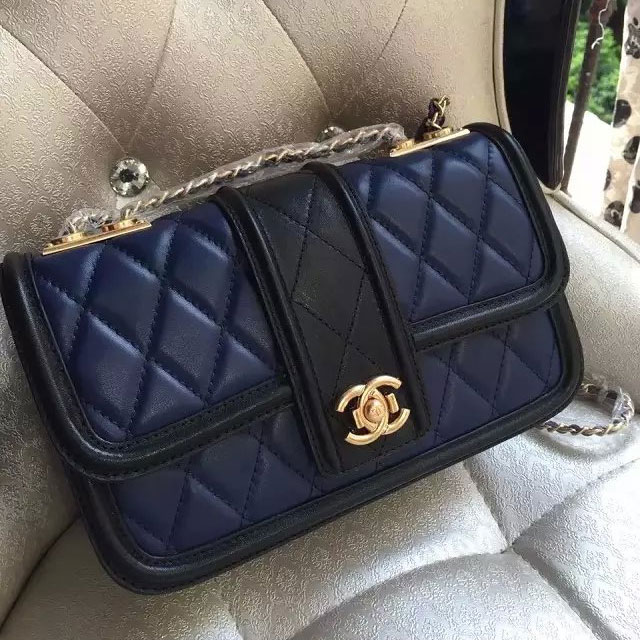 2015 New Chanel Flap Bag Original Calfskin Leather A90670 Black&Blue