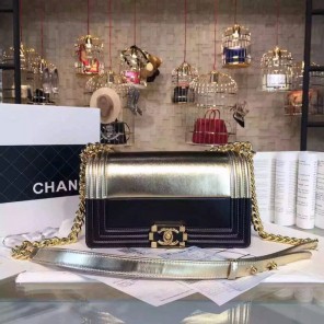 2016 Boy Chanel Flap Shoulder Bag Original lambskin A67086 Black&Gold