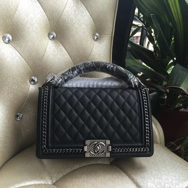 2016 Boy Chanel Shoulder Handle Bag Original Leather A67086 Black with Silver