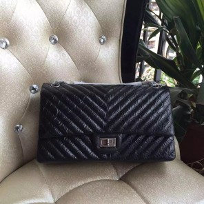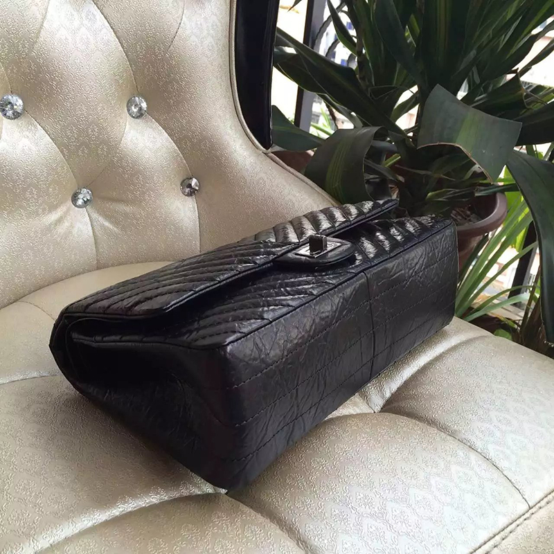 2016 Chanel A30226 Black Original Glazed Crackled Leather Flap Bag Silver