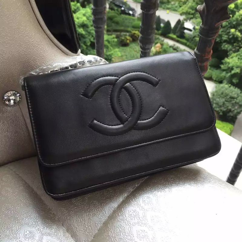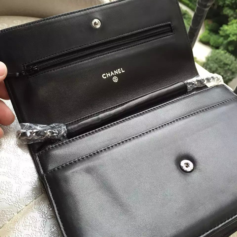 2016 Chanel A33814 Black Original Sheekskin Leather Mini Flap Bag in Silver