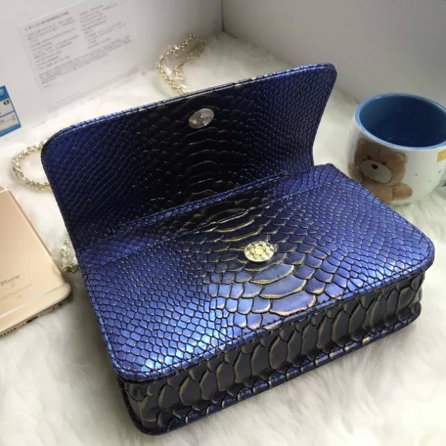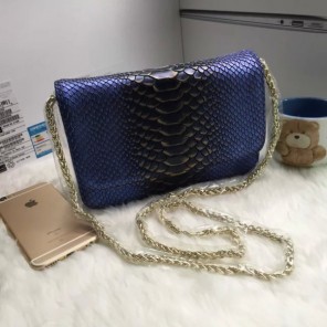 2016 Chanel A33814 Blue Snake stripe leather mini Flap Bag