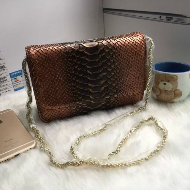 2016 Chanel A33814 Bronze Snake stripe leather mini Flap Bag