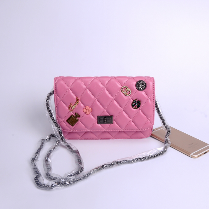 2016 Chanel A33814 Pink Sheekskin Leather Mini Flap Bag in Antique