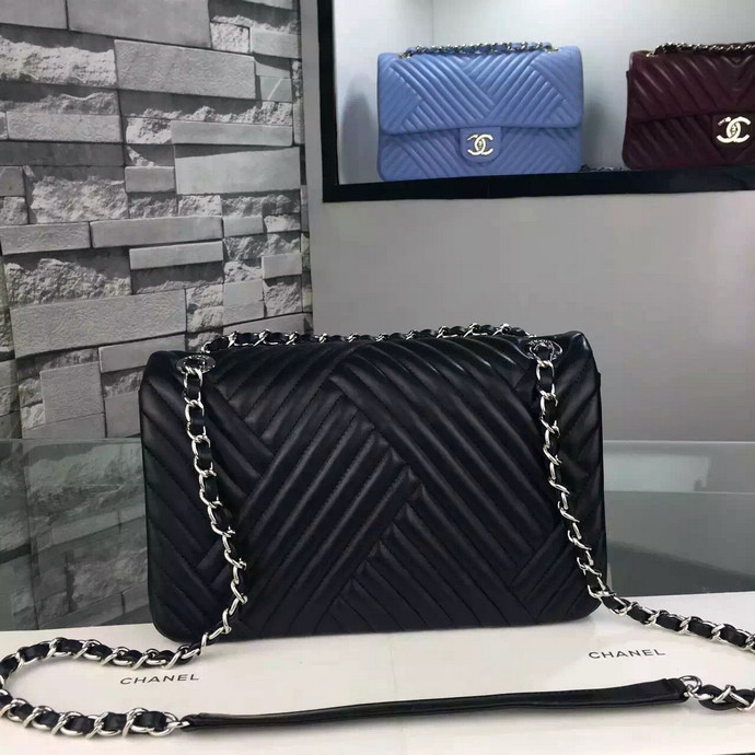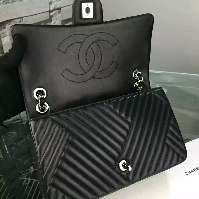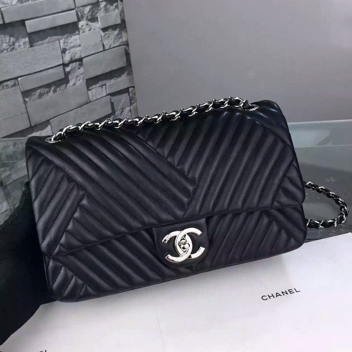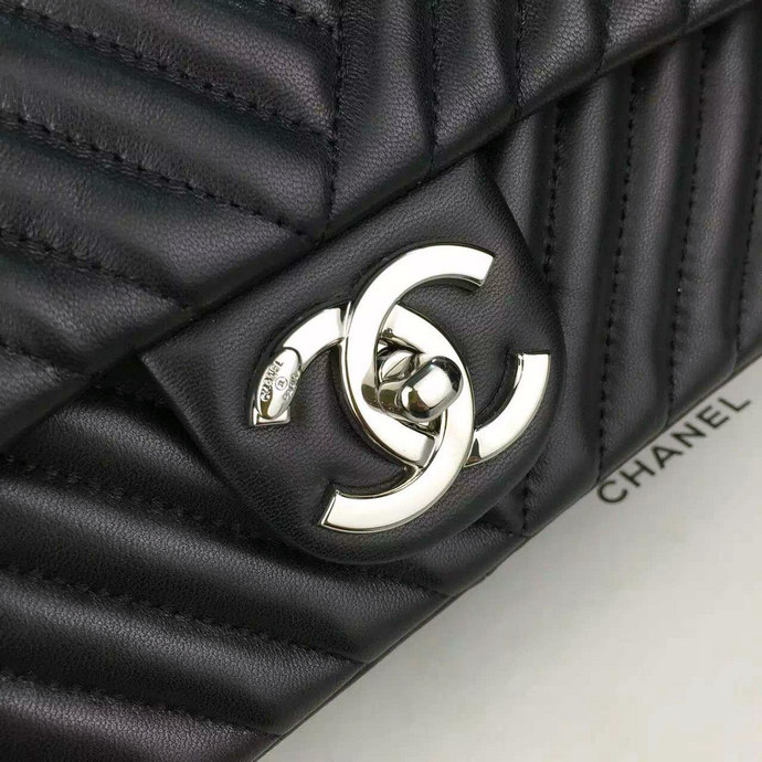 2016 Chanel A93096 Flap Bag Original lambskin Leather Black with Silver