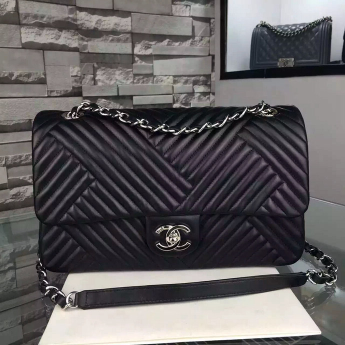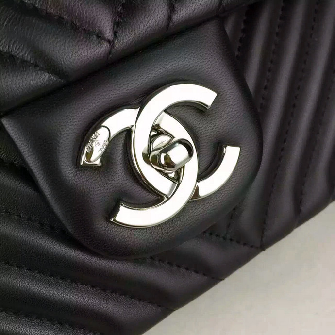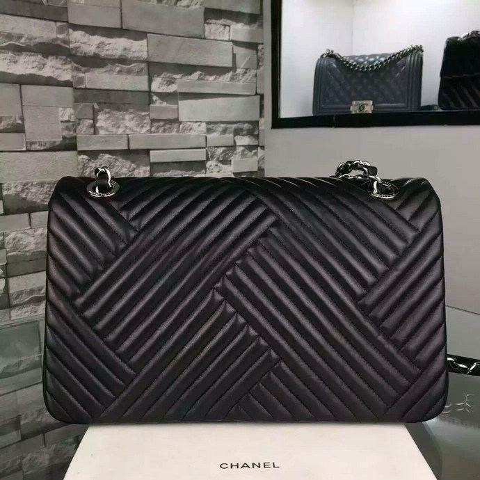 2016 Chanel A93097 Flap Bag Original lambskin Leather Black with Silver