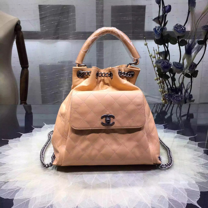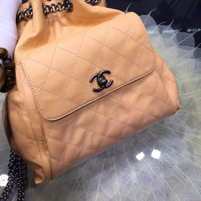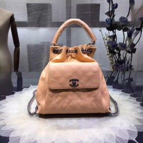 2016 Chanel A93881 Calfskin Leather Drawstring Bag With Handle Apricot