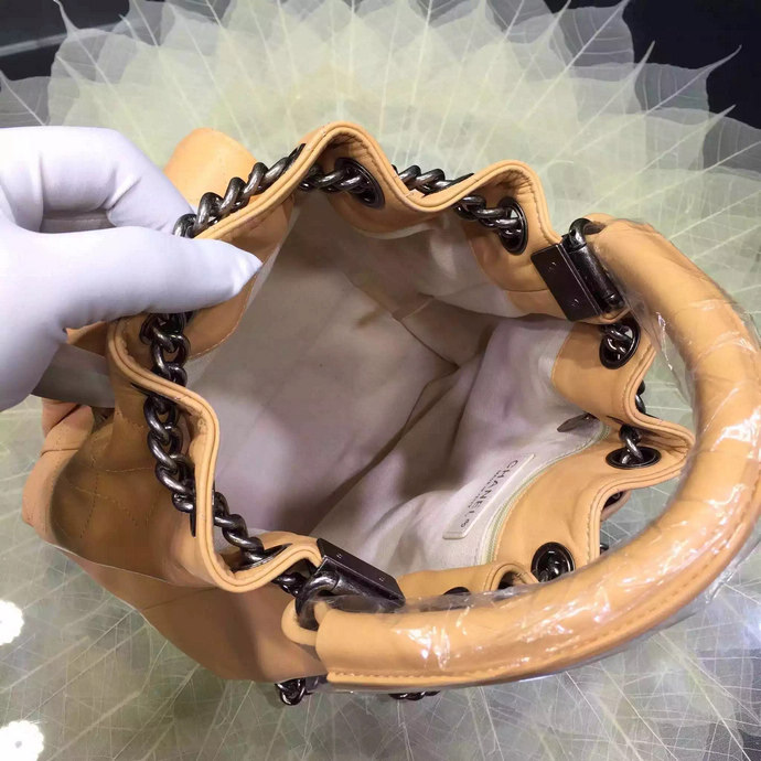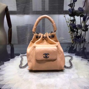 2016 Chanel A93882 Calfskin Leather Drawstring Bag With Handle Apricot