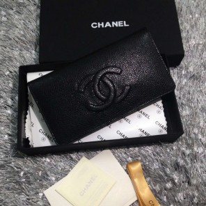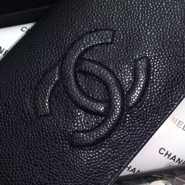 2016 Chanel Bi-Fold Wallet Black Caviar leather A31509 Gold