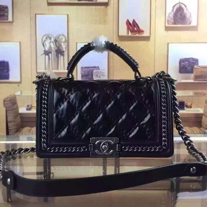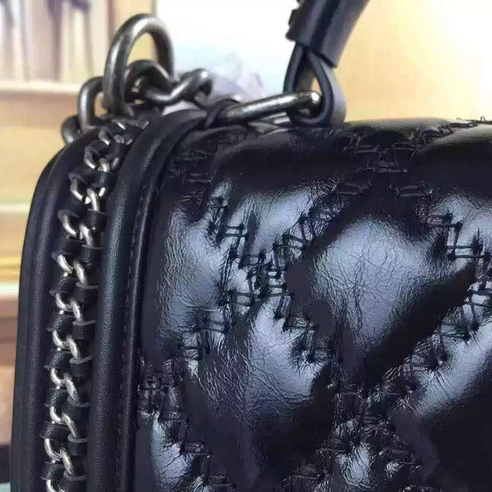 2016 Chanel Boy Flap Shoulder Bag Black Iridescent Leather A67086 Silver